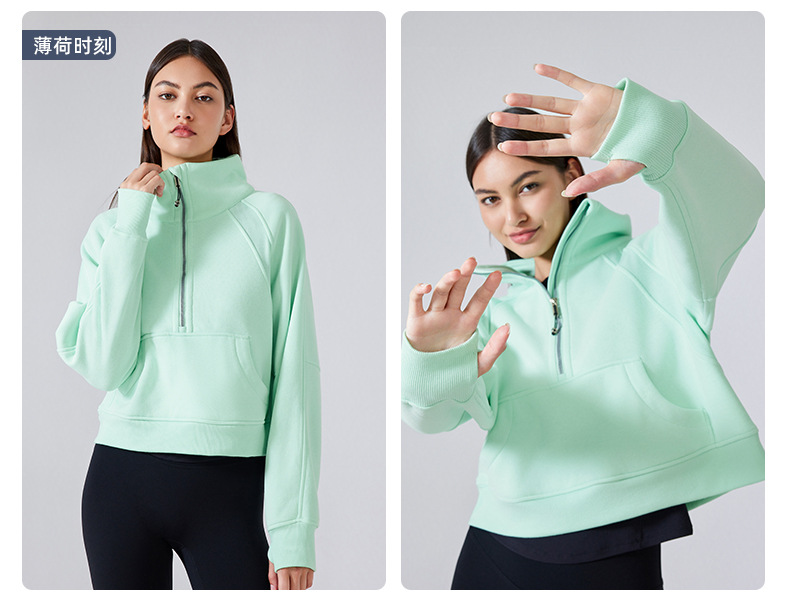 Winter new wear casual plus fleece warm sports hoodie women's half zipper stand collar thick jacket